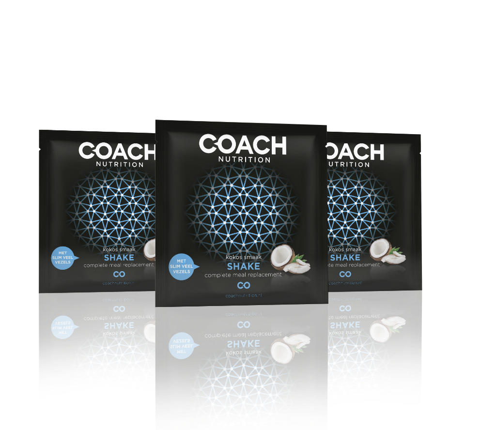 - Doe de inhoud van het zakje in de Coach Nutrition Shakebeker.